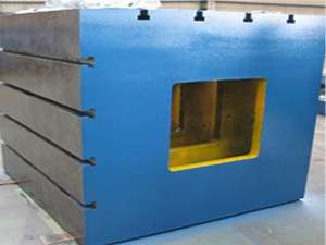 鑄鐵墊箱(機床墊箱)采用優質灰鑄鐵HT200-250,按JB/T3411.56-99標準制造.鑄鐵墊箱(T型槽墊箱)經過兩次人工退火處理,完全去除內應力,鑄件結構穩定,不易變形.